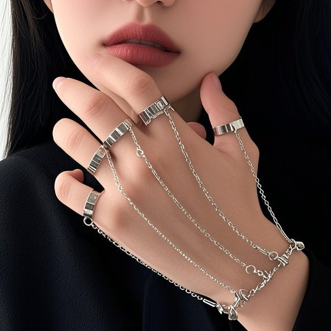 Estilo Punk Cinco e Dois Dedo Conectado Pulseira Cor Prata Liga Hip Hop Moda Anel para Homens e Mulheres