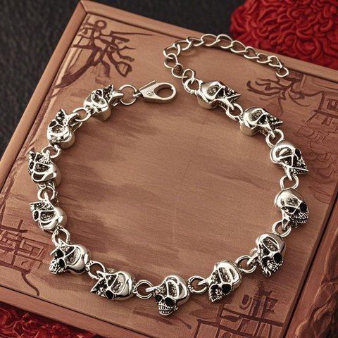 2025 Retro Hip Hop Estilo Punk das mulheres dos homens Banhado A Ouro Liga Cadeia Pulseira Criativa Moda Preto Ligação Pulseiras Cabeça Do Crânio