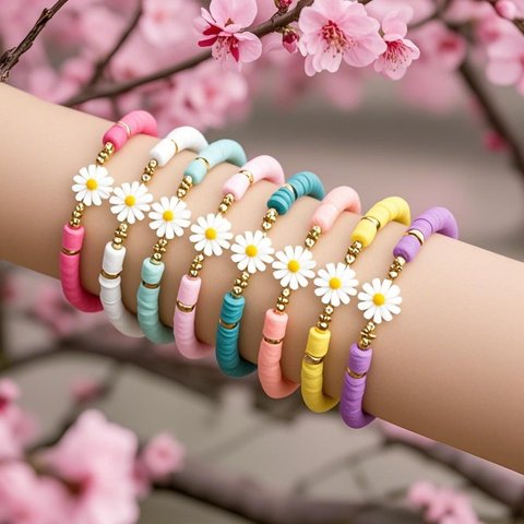 Bohe Polymer Clay Flor Mulheres Pulseira Argila Talão Frisado Pulseira Delicado Presente Jóias