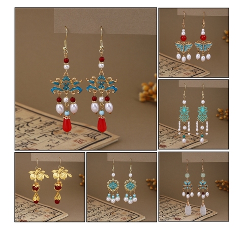 Pendientes colgantes de aleación para mujer de estilo chino elegante al por mayor Accesorios de belleza de gota étnica para regalo hechos de aleación de Zinc